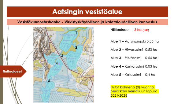 Kello-Aatsingin osakaskunta on toteuttamassa vesistökunnostushanketta Aatsingin vesialueella vuosien 2024–2026 aikana. Hanke on osa vuonna 2022 käynnistynyttä hankekokonaisuutta – Aatsingin vesistöalueen virkistyskäytöllinen ja kalataloudellinen kunnostus 2023–2033.